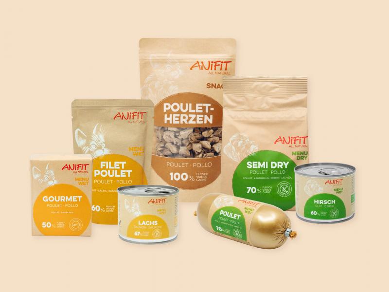 ANiFiT steht für natürliche Tiernahrung in hoher Qualität, dies kommt nun auch visuell zur Geltung. Die Rezepturund somit der Inhalt unserer qualitativ hochwertigen Produkte bleibt unverändert. Die offene und ehrliche 100%-Deklaration aller Inhaltsstoffe finden Sie, wie gewohnt, auf der Rückseite des Produktes und auf der Produktseite im Online Shop. Das neue Verpackungsdesign ist vereinfacht und strukturierter und hilft Ihnen, alle Informationen schnell zu erfassen. Im Zentrum stehen die Farben «grün» und «gelb», die für das jeweilige Sortiment Hund oder Katze stehen. Produkte, die für Hunde und Katzen geeignet sind,erscheinen neu in «braun», so wird klar getrennt und gut sichtbar, für welche Tierart, welches Futter geeignet ist.